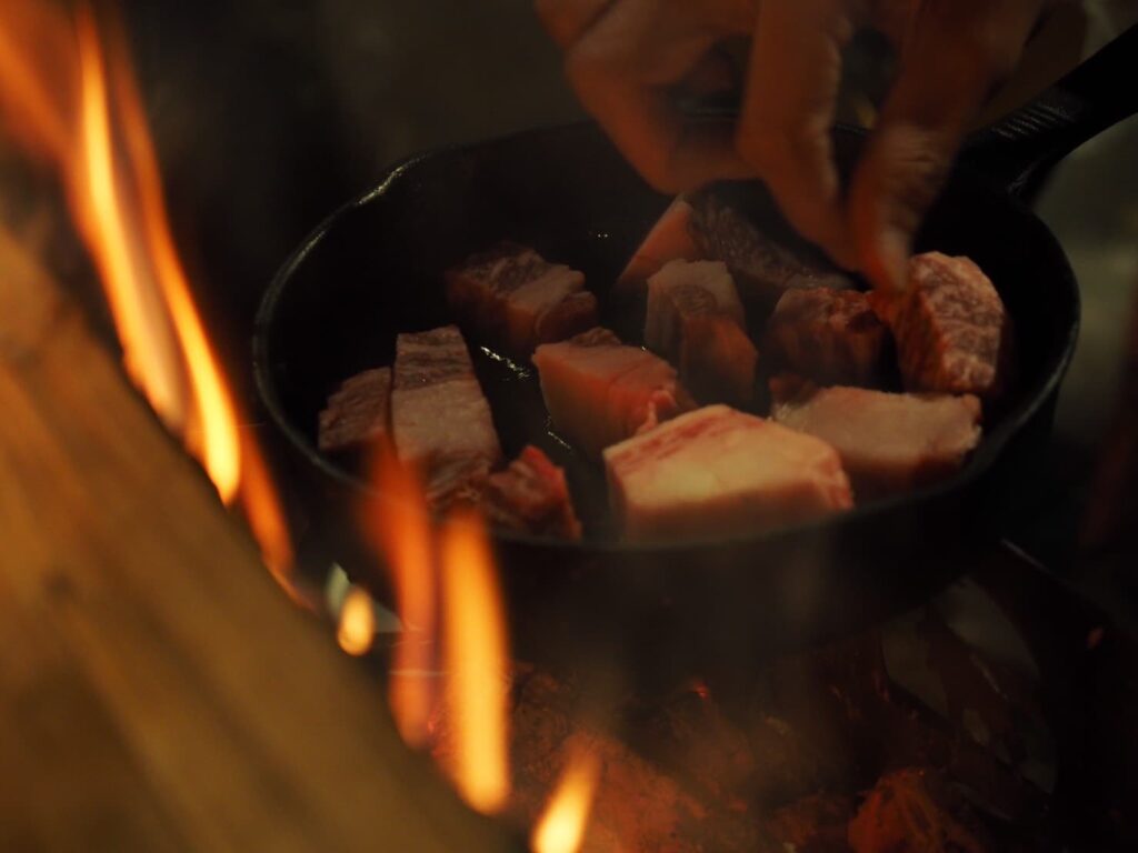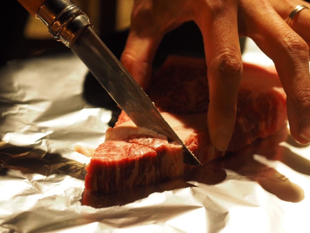 肉を切る…