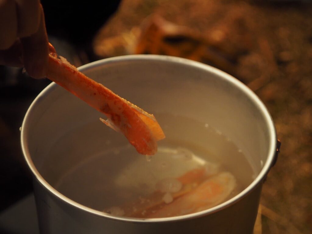 蟹を茹でる…