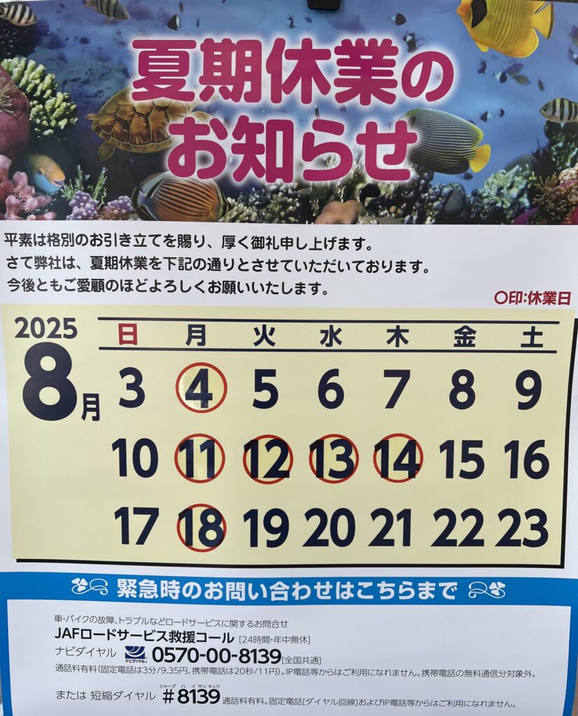 8月はお盆休みをいただきますので