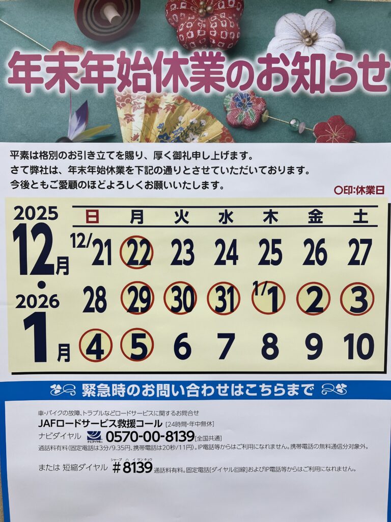 年末年始 12月29日(月)~1月5日(月)