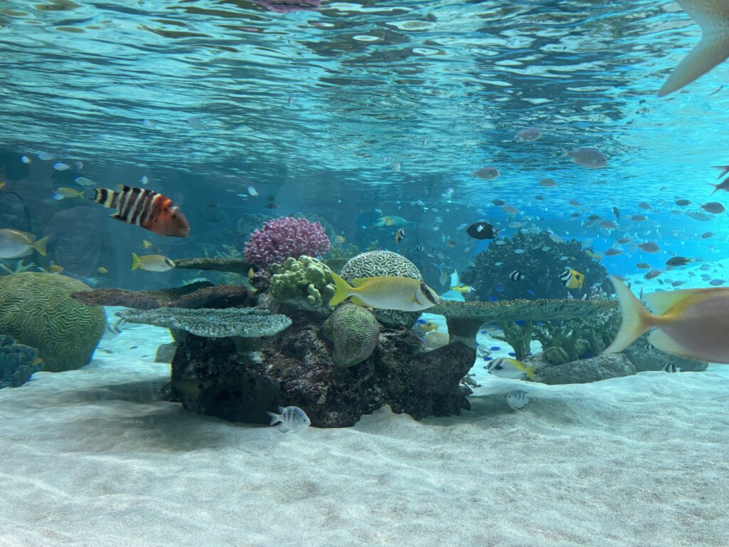イルカショーをみたり、サメに触ったりなどして