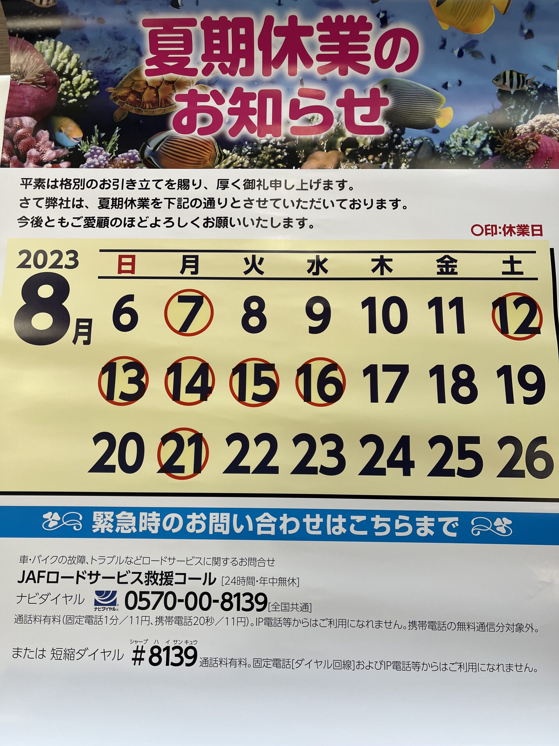 夏季休暇のお知らせ🍧